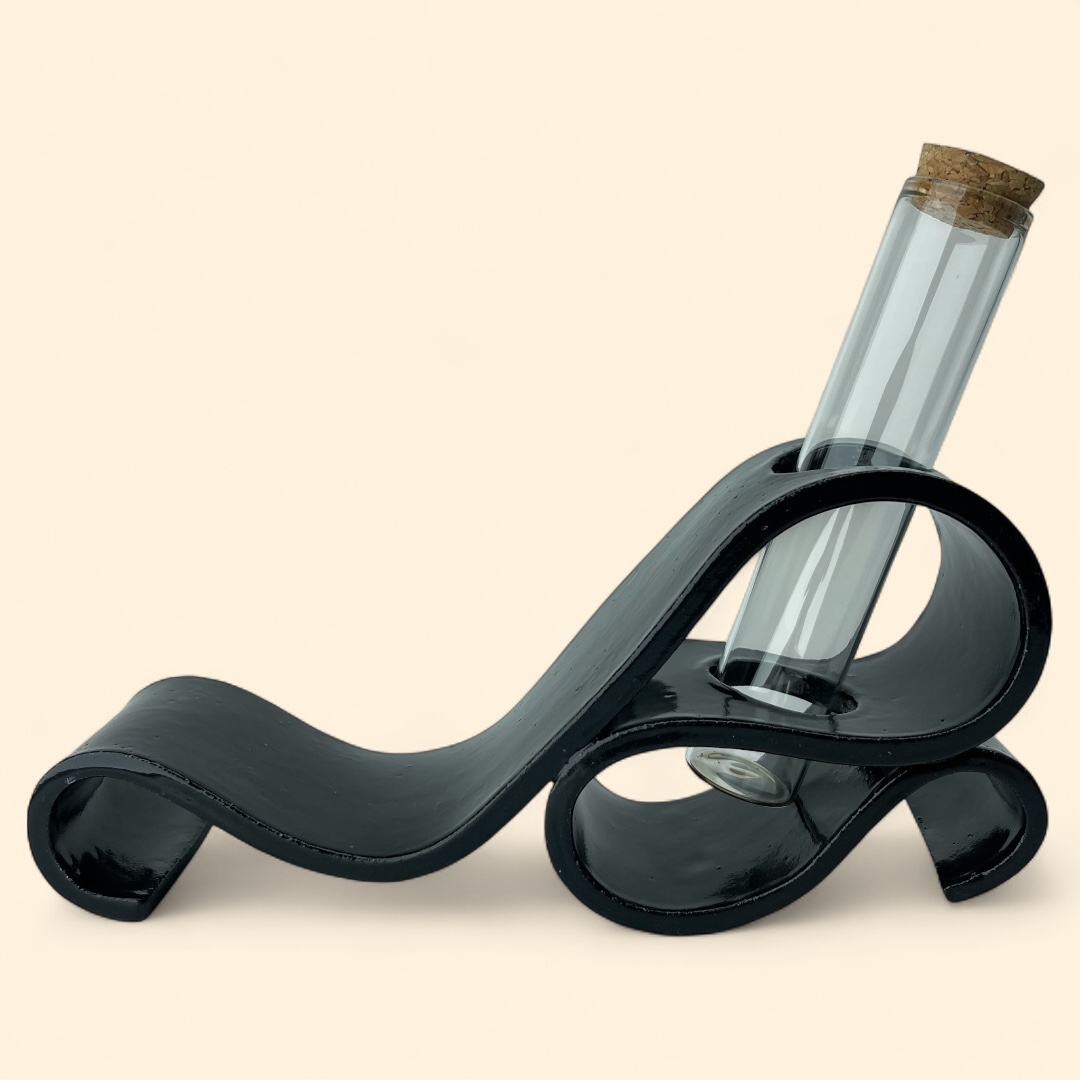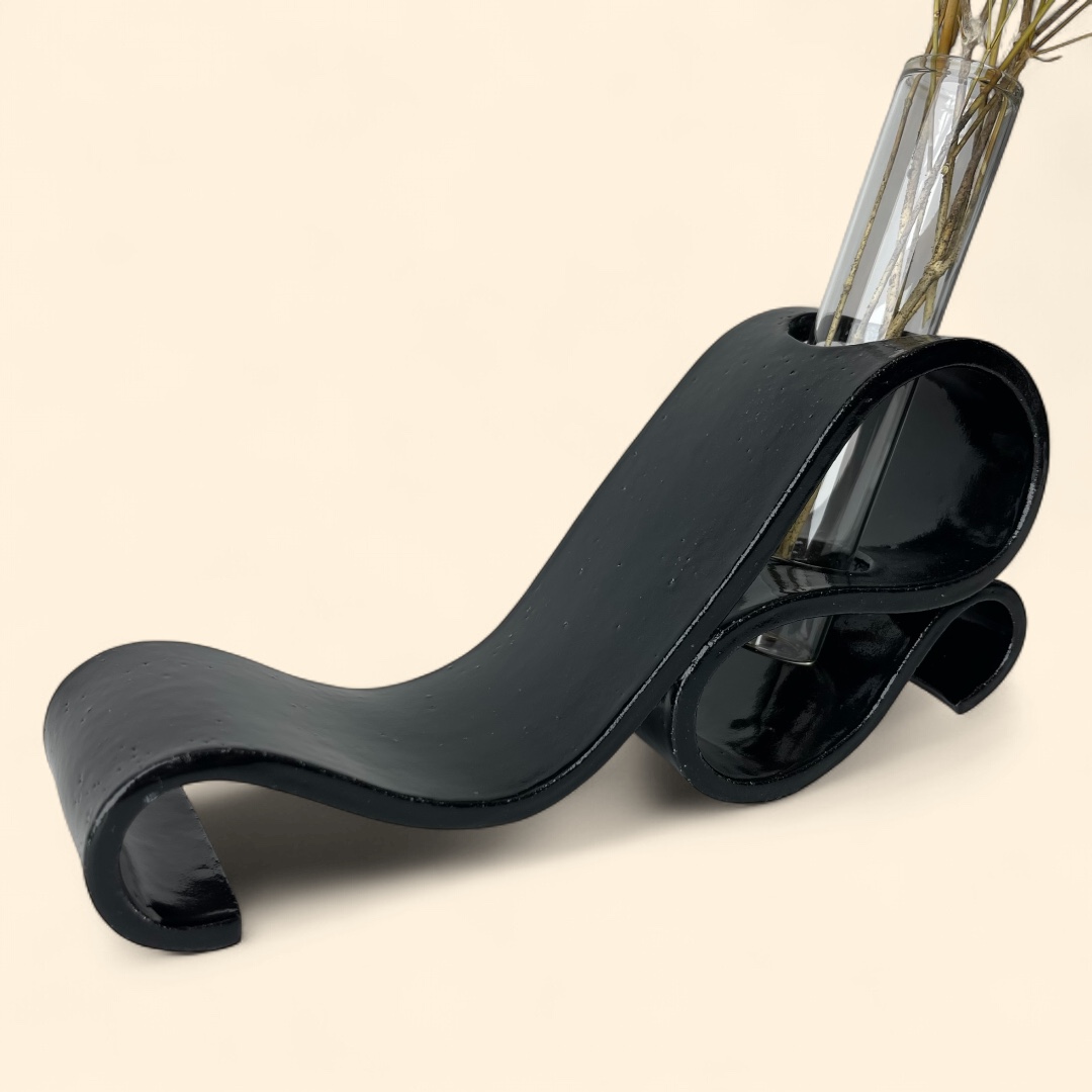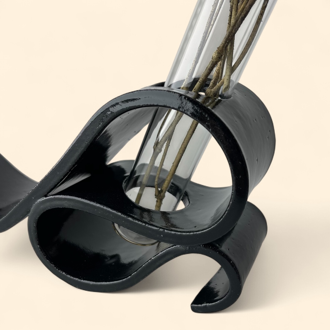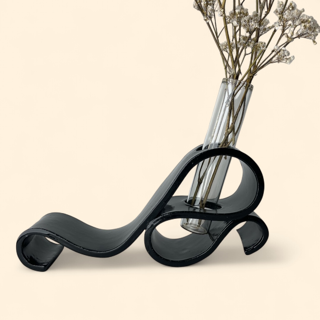A stunning blend of art and elegance! Perfect for displaying flowers or as a stand-alone art piece, this vase is sure to be a conversation starter. Whether you’re sprucing up your home or looking for the perfect gift, the Serene Swirl Vase – Back to Black brings a modern artistic flair to any room. Vase is delivered including test tube (80ml), excluding foliage.